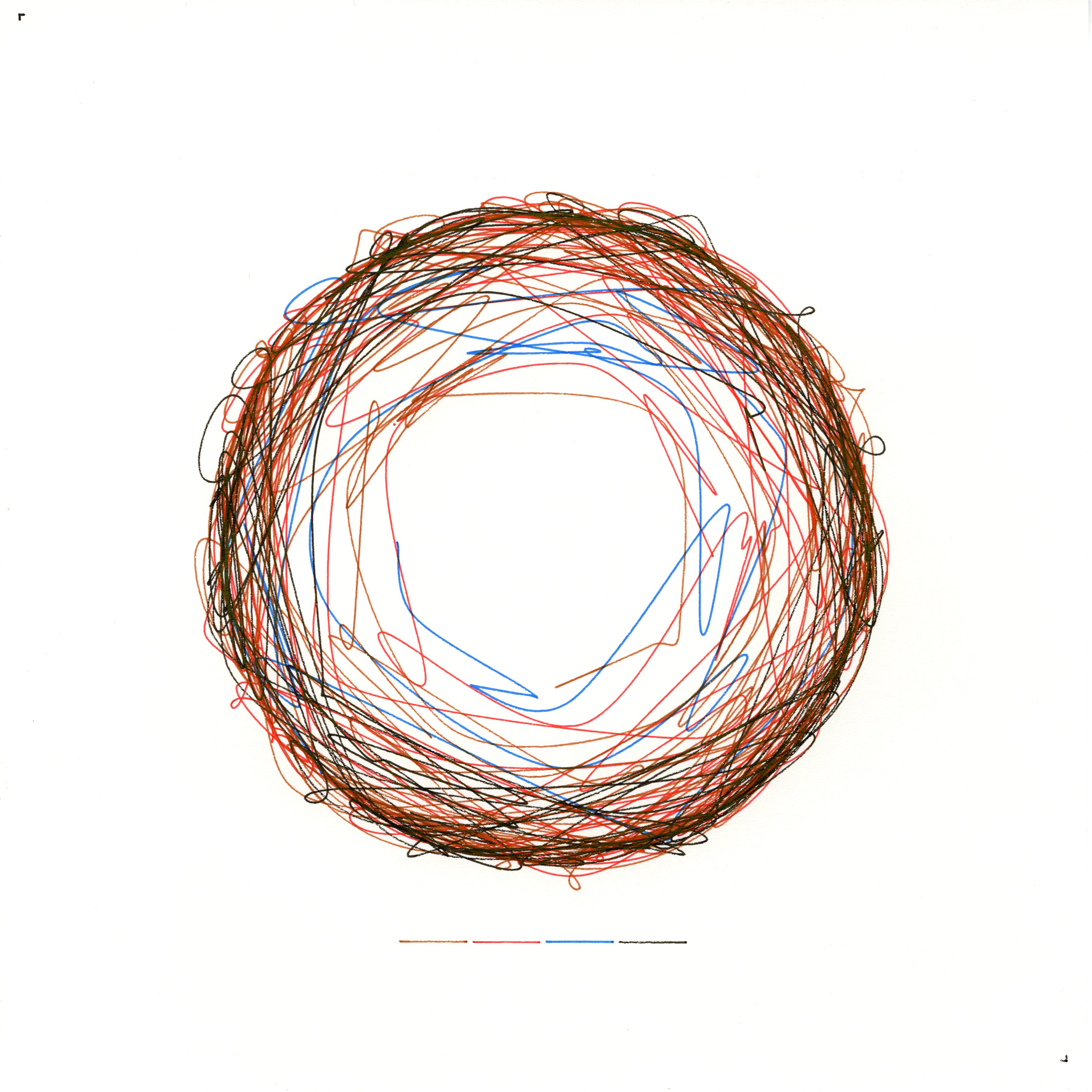 Interwoven Thoughts explores the complexity of consciousness and the myriad threads that compose identity. The artwork utilizes intricate patterns of interlacing lines and curves to represent the tangled web of thoughts, experiences, and memories. By embracing both order and randomness, the piece reflects the dynamic nature of self-perception. The consistent use of line thickness and adherence to physical drawing constraints ground the abstract concept in tangible reality.