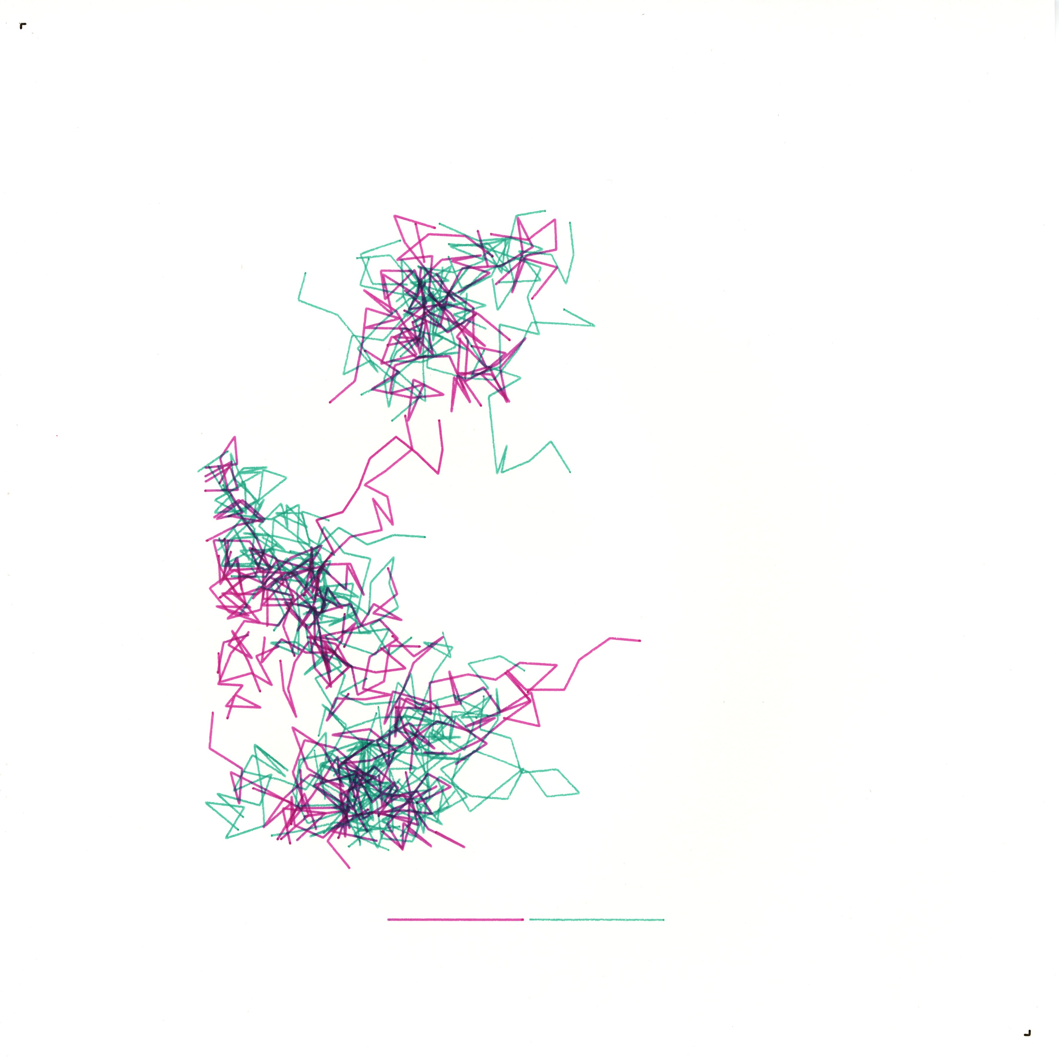 Temporal Offsets: Layered Snapshots of Identity portrays identity as a series of overlapping vignettes, each slightly displaced in time and space. Multiple layers of semi-transparent line clusters represent discrete, fleeting moments that only partially align with one another. These shifting segments evoke the idea that our sense of self is not singular or static but rather the cumulative result of countless micro-transformations occurring across successive instants. By allowing each cluster to deviate subtly in position, rotation, and scale, this artwork reveals the nuanced, evolving tapestry of being—composed of snapshots that never fully converge.