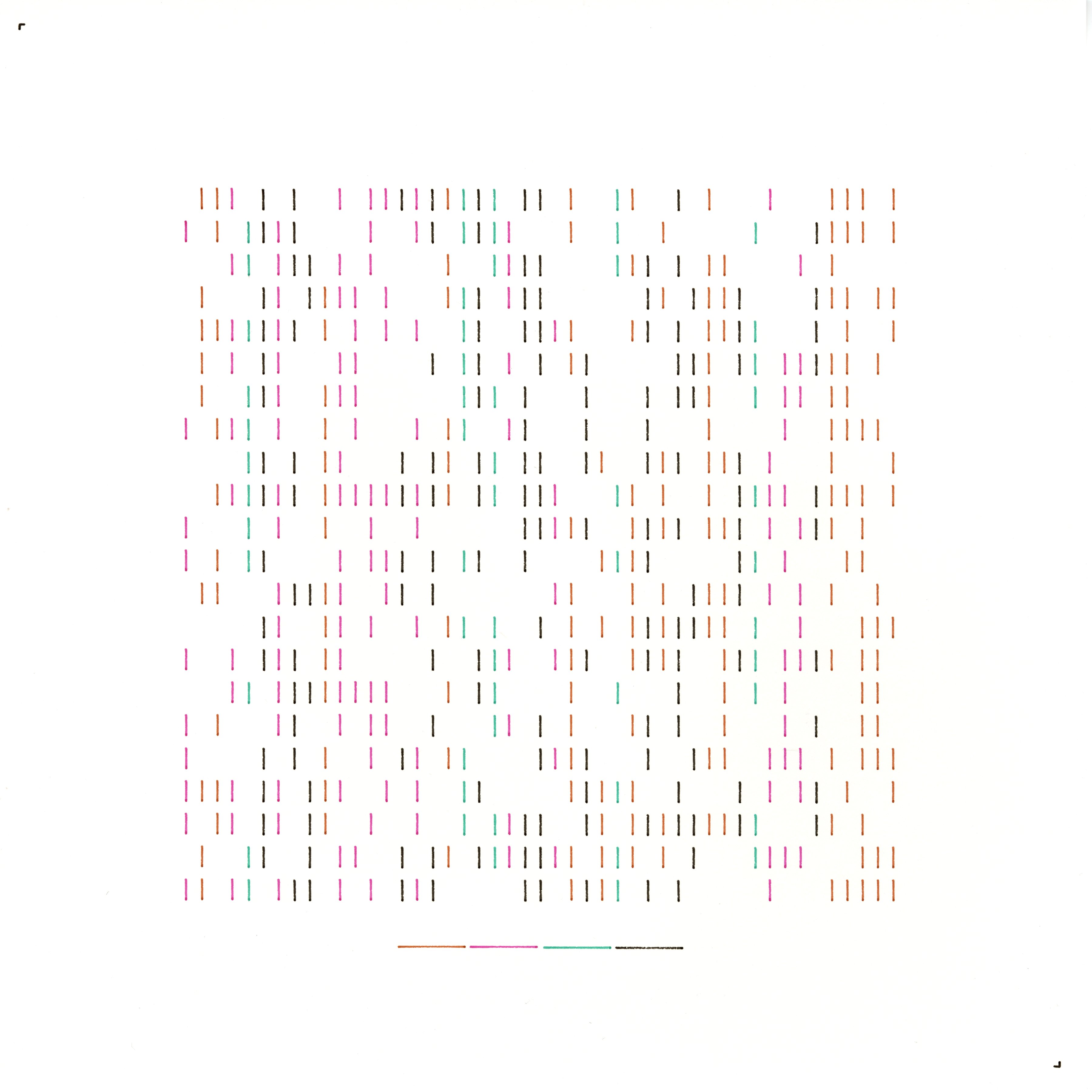 In Binary Codex: The Bar Code of Identity, I reframe my inner architecture as a grid of binary decisions—a barcode in which each column encodes a fragment of my self. The work area is subdivided into a non-overlapping grid of cells. In each cell, a random binary choice determines whether a short vertical stroke is drawn. A “1” is rendered as a vertical line centred in the cell (with slight top and bottom gaps to ensure separation), while a “0” leaves the cell blank. Each column is assigned one colour (chosen from a restricted nine‑colour palette) that marks its entire sequence. Together, the discrete marks form a visual codex that symbolizes how individual data points combine to create a coherent, modular self.