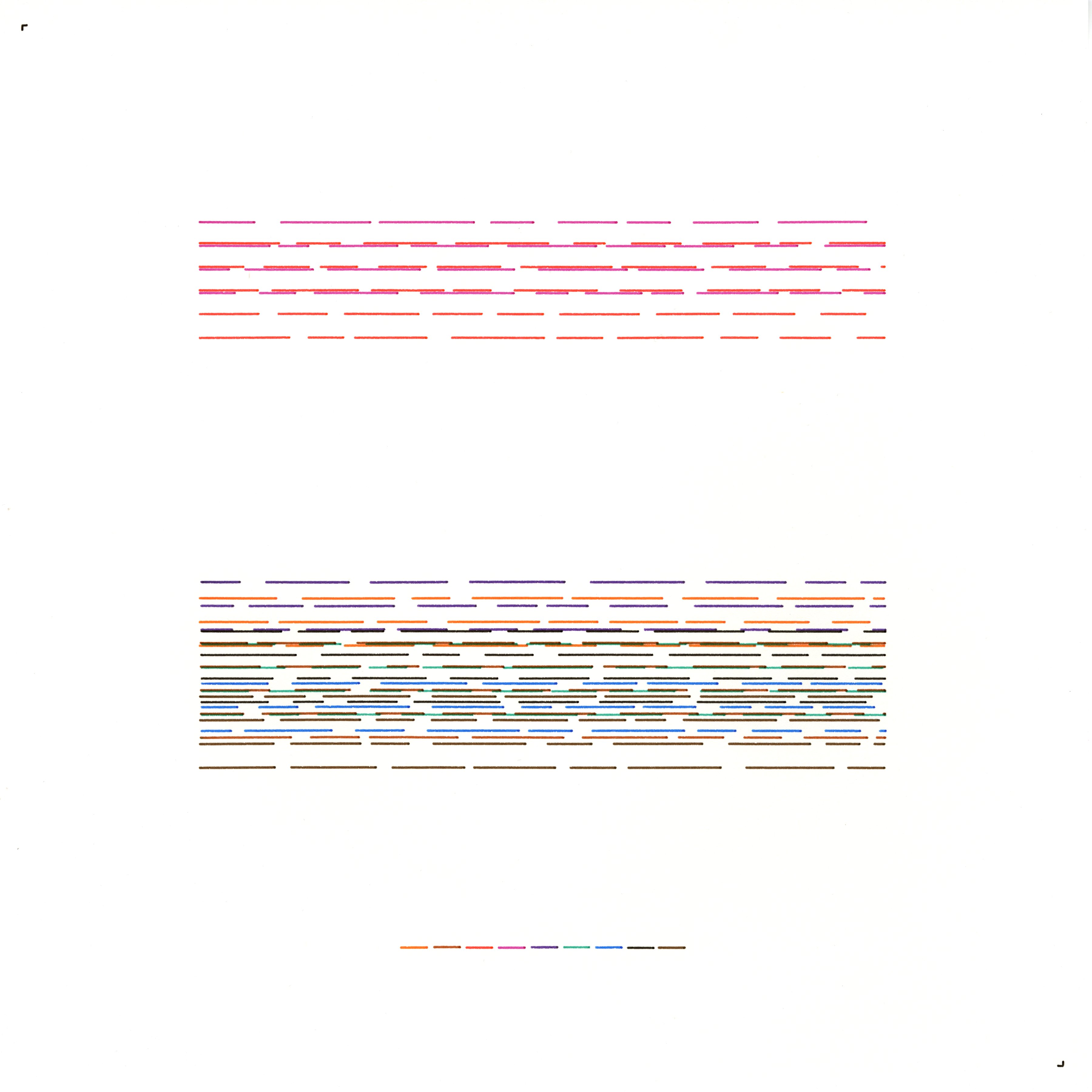 This piece explores identity as a series of horizontal trajectories—each representing a moment in time that is complete yet inherently fragmented. The work is composed of rows of line segments that intentionally break apart, reflecting the impermanent and discontinuous nature of self-perception. By using carefully placed gaps, the drawing embodies the notion that our inner continuity is as much defined by what is missing as by what is present.
