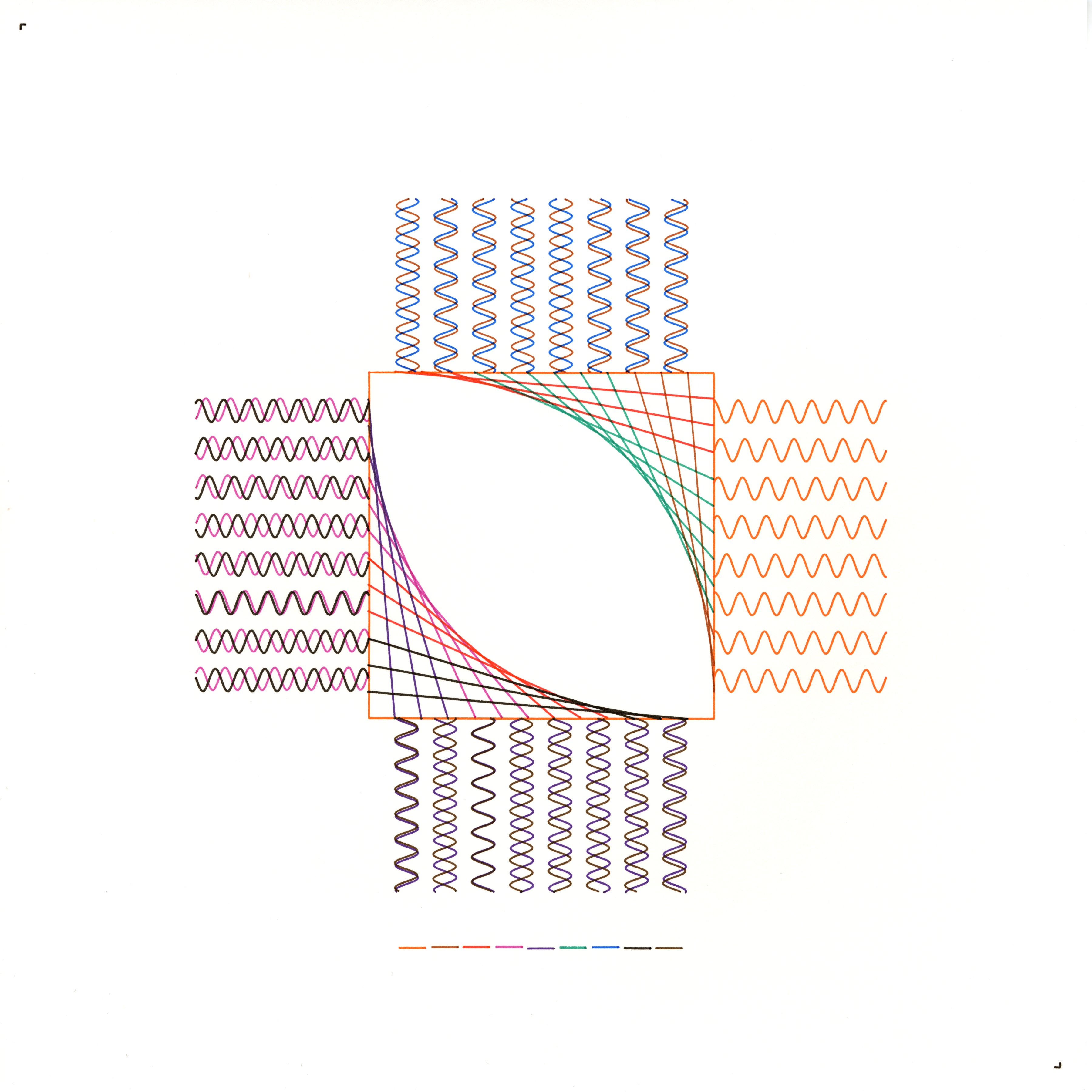 I envision my identity as a central “core” that both reveals and conceals its layers through crosshatching, while waves of possibility—diffraction lines—radiate outward in various directions. These wavy lines represent external and internal influences passing around the core, creating interference patterns that shape how the self is perceived. Each colour contributes its own “voice,” suggesting that identity emerges from multiple overlapping threads. Inside the square, diagonal lines hint at hidden structures and internal intricacies. Together, these elements convey the idea of a self that is both grounded and fluid, constantly negotiating the boundary between inner texture and outward expression.