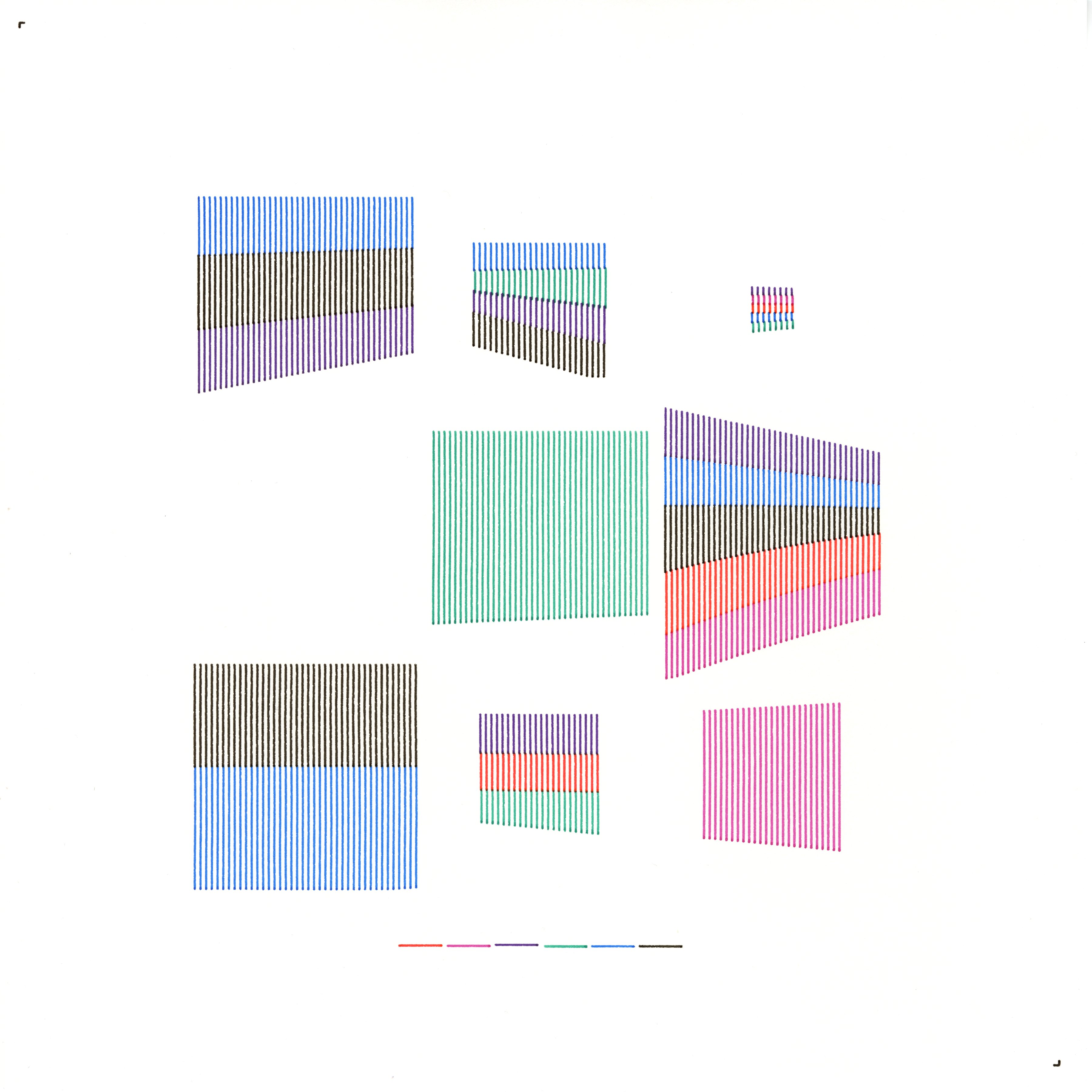 In Multi-Plane Perspectives: A Tapestry of Walls, my digital self is expressed as a collection of distinct walls or planes arranged across a structured grid. Each wall is a skewed, transformed rectangle filled with vertical streams of parallel lines, representing unique facets of identity. Random transformations—including yaw, pitch, roll, rotation, and skew—as well as size variations, endow each wall with its own perspective. Together, these walls create a layered, multifaceted self-portrait that reflects the complex nature of internal identity.