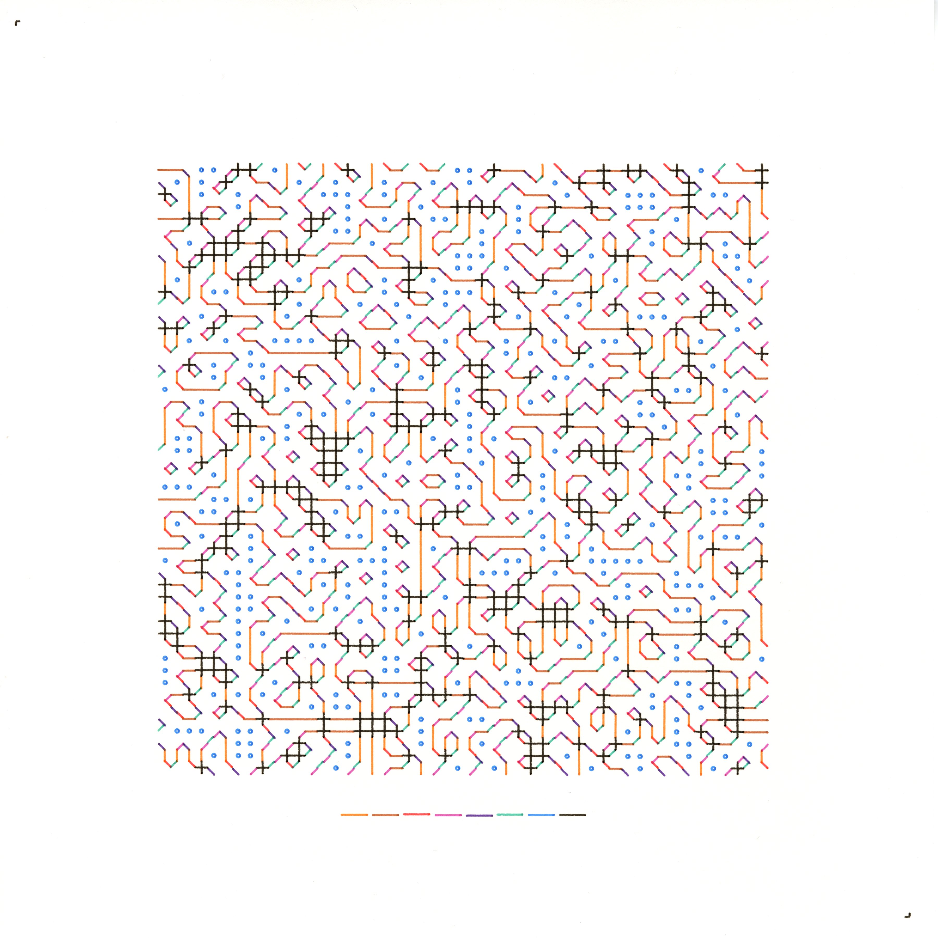 This self-portrait presents my identity as an interlocking tapestry of tiles, each edge signifying either a continuous line or a blank frontier. By enforcing strict adjacency rules (line must meet line, blank must meet blank), I expose the delicate interplay between structural constraint and individual distinctiveness. Much like a personality composed of varied facets, each tile shape stands on its own, yet it must connect flawlessly to its neighbours. Where alignment occurs, local harmonies form a bigger mosaic. The resulting composition reflects a dual nature: the sense of self as both composed of discrete pieces and united in a larger, intricate pattern.