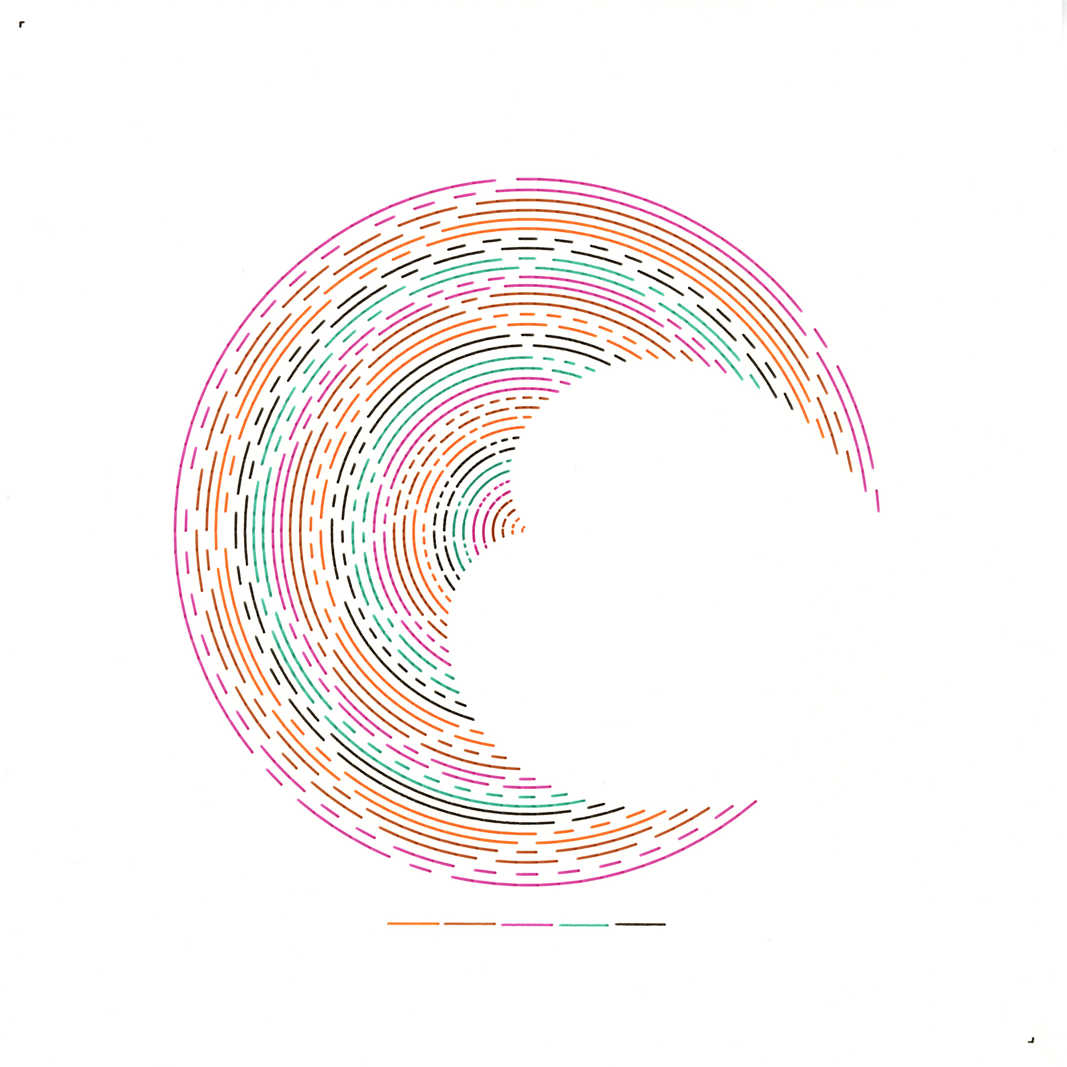 I picture my mind as a vortex of potential that evolves through countless binary choices. Each decision radiates outward, shaping the next frontier while leaving behind a record of change. In this drawing an elementary cellular automaton, biased toward its most vibrant rules, blossoms from a single seed into concentric rings. Slight noise-driven breaths and broad bands of colour temper the structure, turning strict logic into an organic pulse. The portrait becomes a living mandala—order and uncertainty held in dynamic equilibrium.