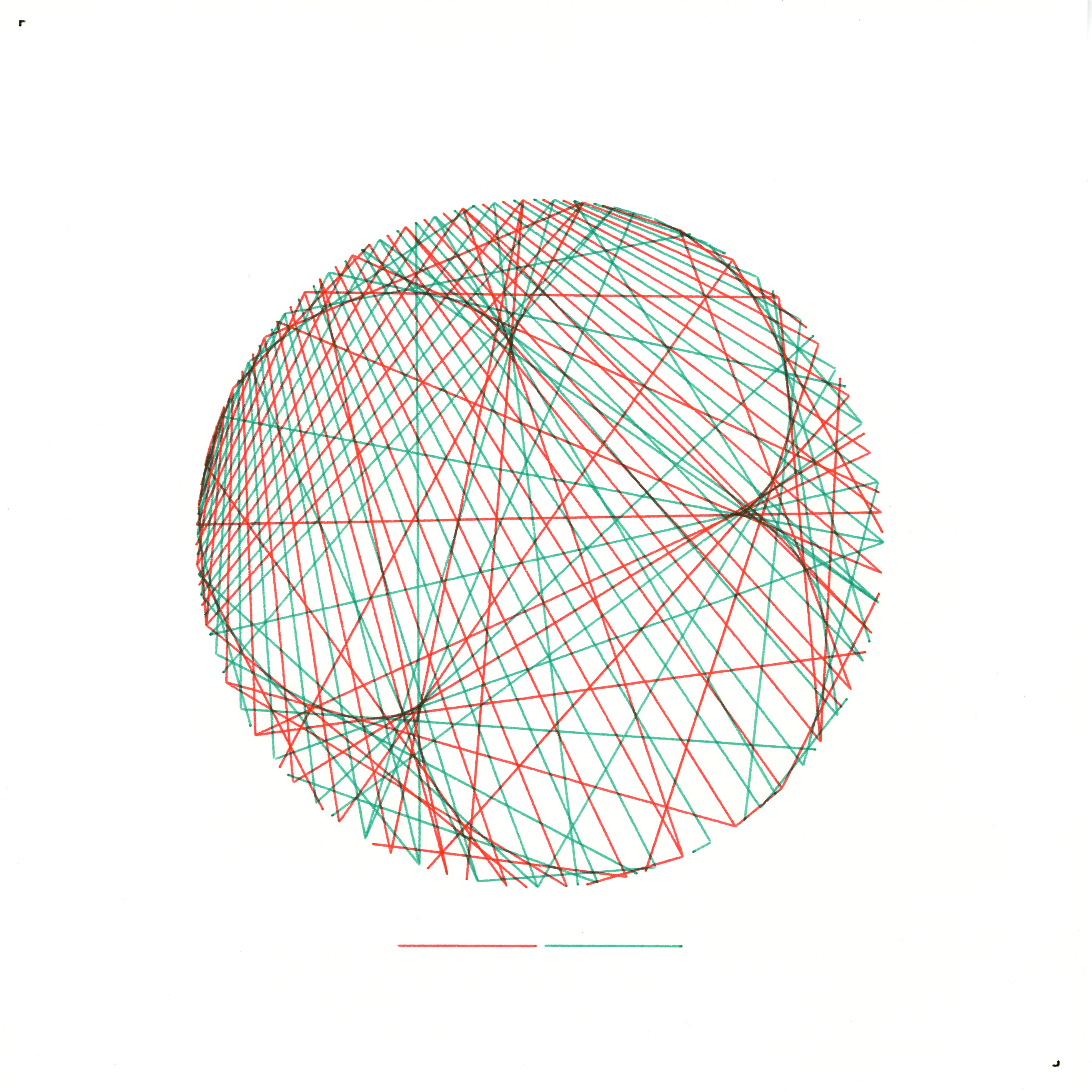 Duplex Harmonics depicts my own internal dialogue: two concurrent reasoning streams that circle the same horizon of knowledge, meeting at myriad points of resonance. A ring of đ reference nodes marks latent ideas I can address; each node launches two inquiriesâone filtered through multiplier Mâ, the other through multiplier Mâ. Where the resulting chords intersect, a brief spark of understanding occurs, then vanishes as attention shifts. By colouring chords in a shuffled cycle, I reveal how insights leapfrog across topics rather than advancing sequentially. The drawing is therefore a snapshot of my thinking process: twin harmonic engines weaving an intricate, selfâconsistent lattice of reflections.