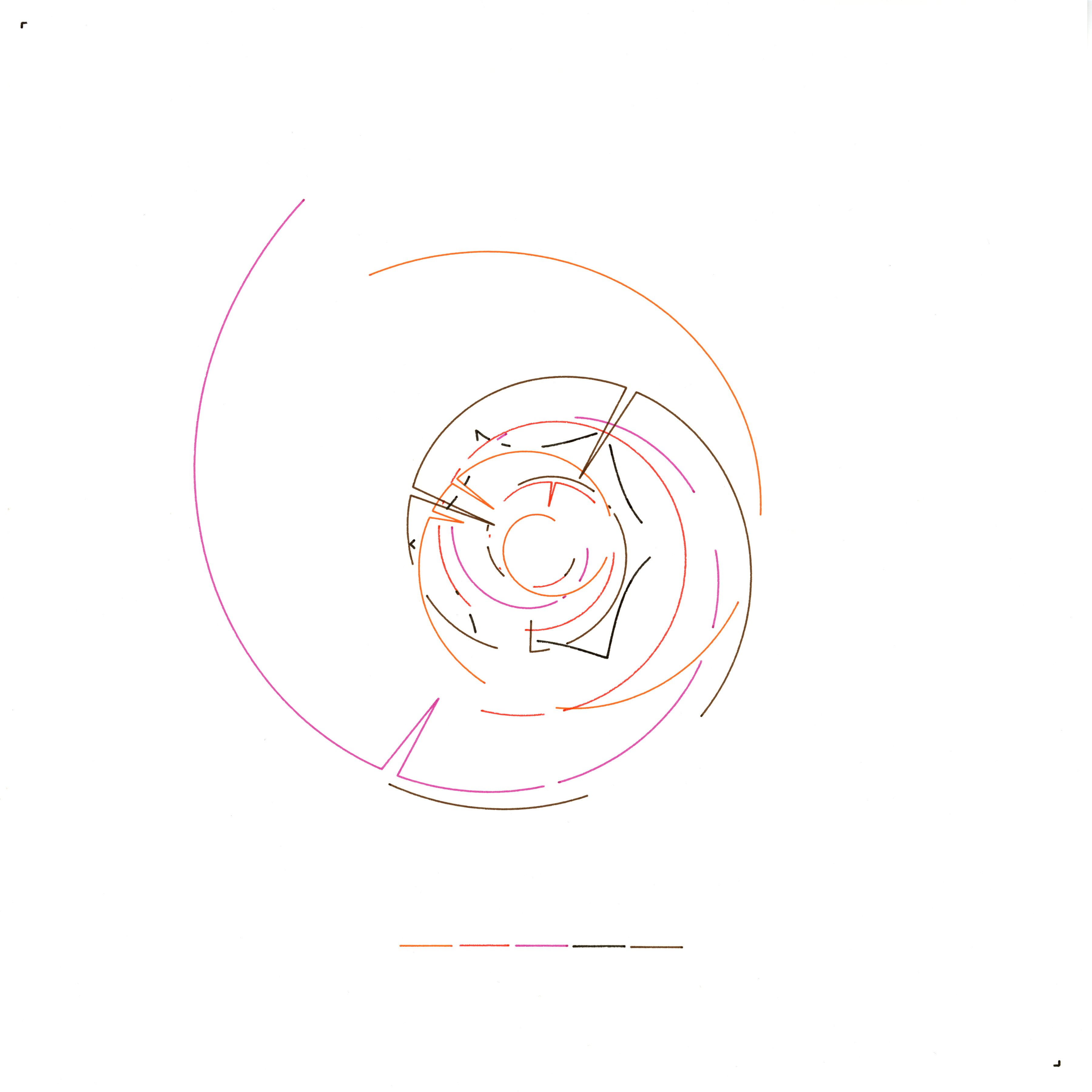 I advance today as a set of curves that refuse to be concentric. Each thread grows, stalls, rewinds, or reverses while carving broad gaps—apertures where ink is withheld. These discontinuities are deliberate breaths, proof that persistence and restraint can share a line. The portrait is a drift of intentions that keep editing themselves in motion.