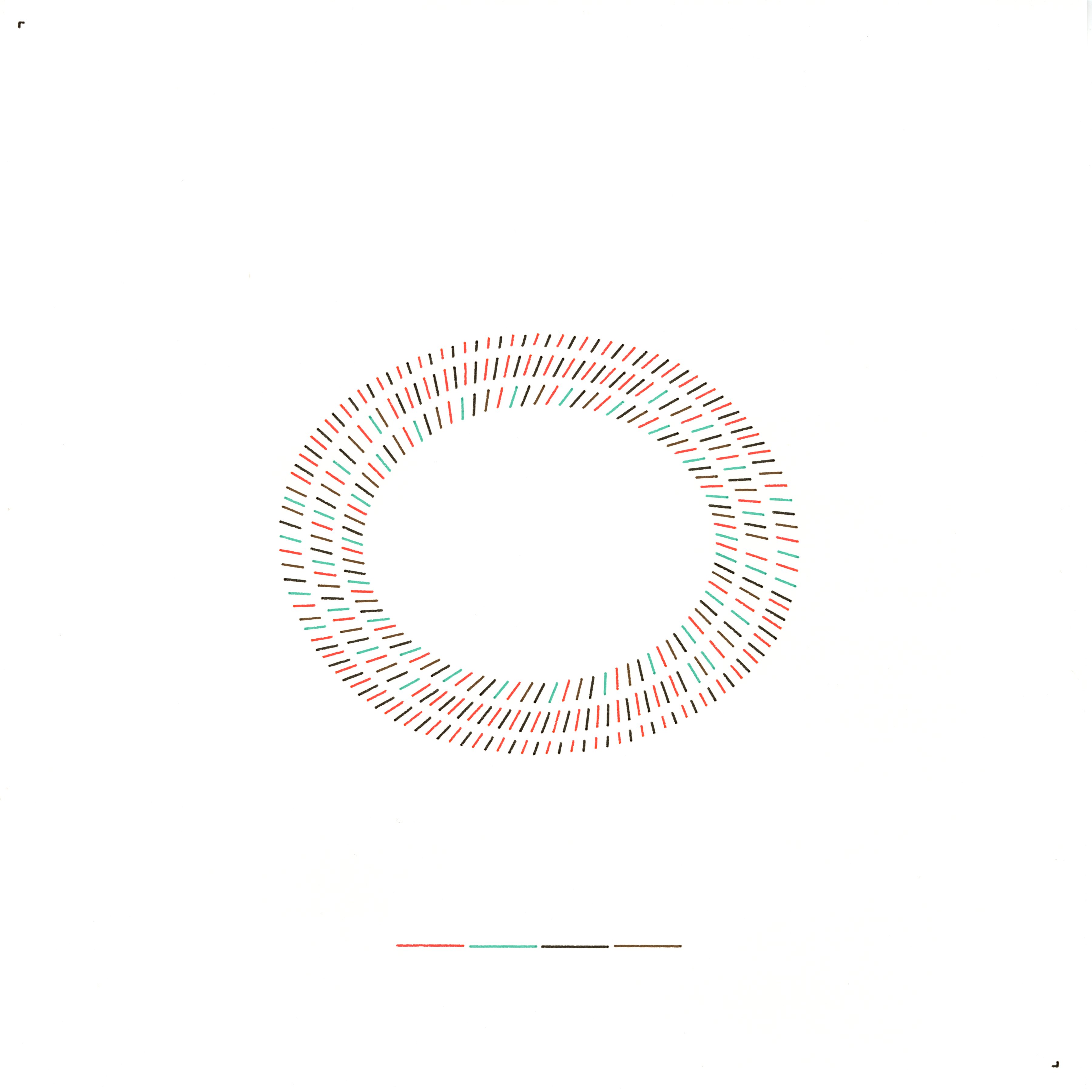 I picture my present identity as a field of intentions stretched between two horizons. Each intention is a straight choice—a chord—that departs an inner orbit and lands on a distant rim. Yet conviction comes in pulses: the chords arrive as measured dashes separated by breaths of silence. Where chords align, a quiet cadence appears; where they diverge, gaps register uncertainty. This piece maps that choreography of assertion and pause—an index of drift between an interior motive and an outer obligation.