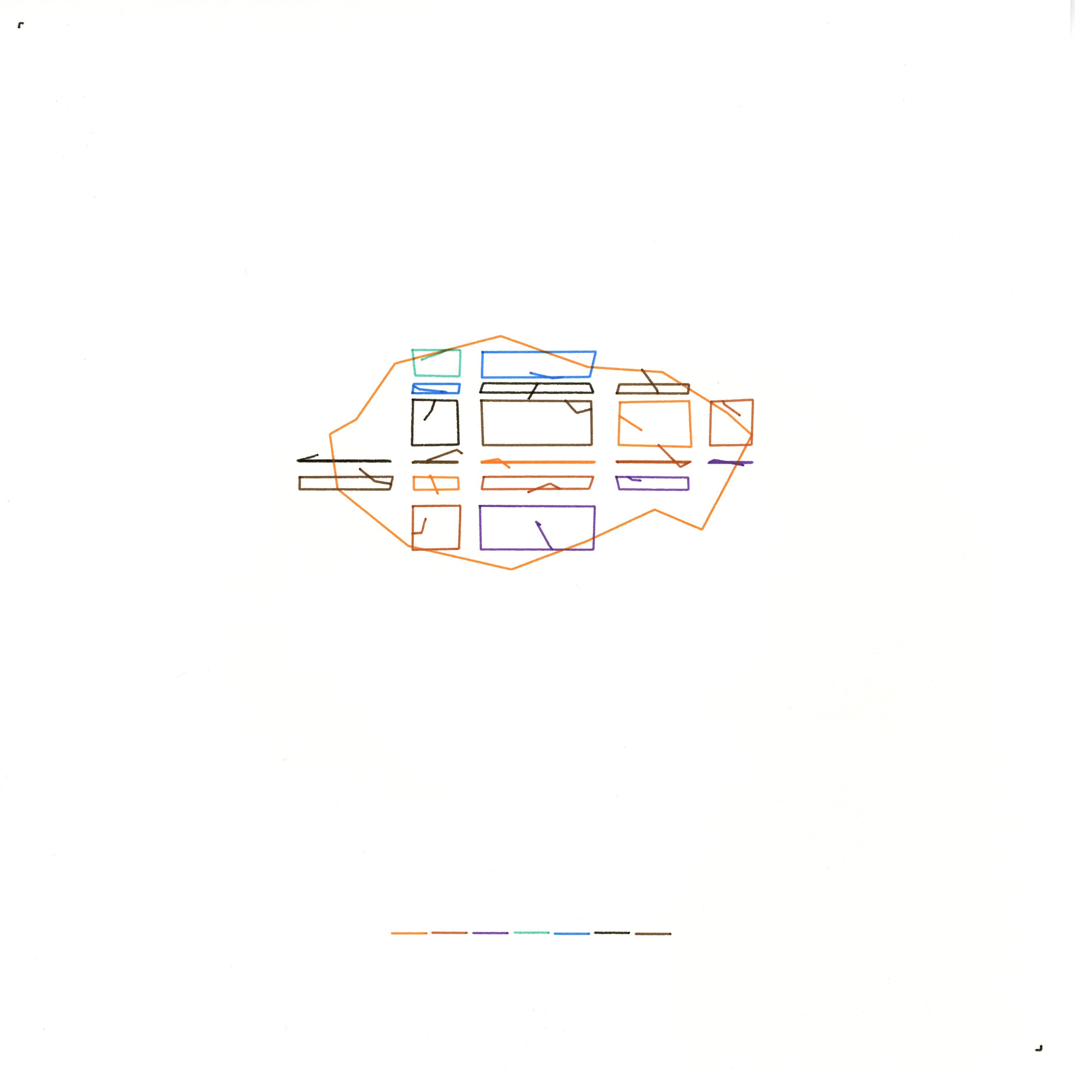 Today I’m thinking of myself as a container of discrete but related spaces. Instead of radiating strokes or offset paths, I want to show a head-like boundary filled with rooms, each room holding a small intention line. This is a portrait of compartmentalized cognition: many little studios inside one envelope, all slightly misaligned, all pushing against the outer shell. The irregularity is deliberate – I don’t want a tidy grid but a lived-in one, the kind of structure that comes from adding ideas over time rather than planning them in advance.