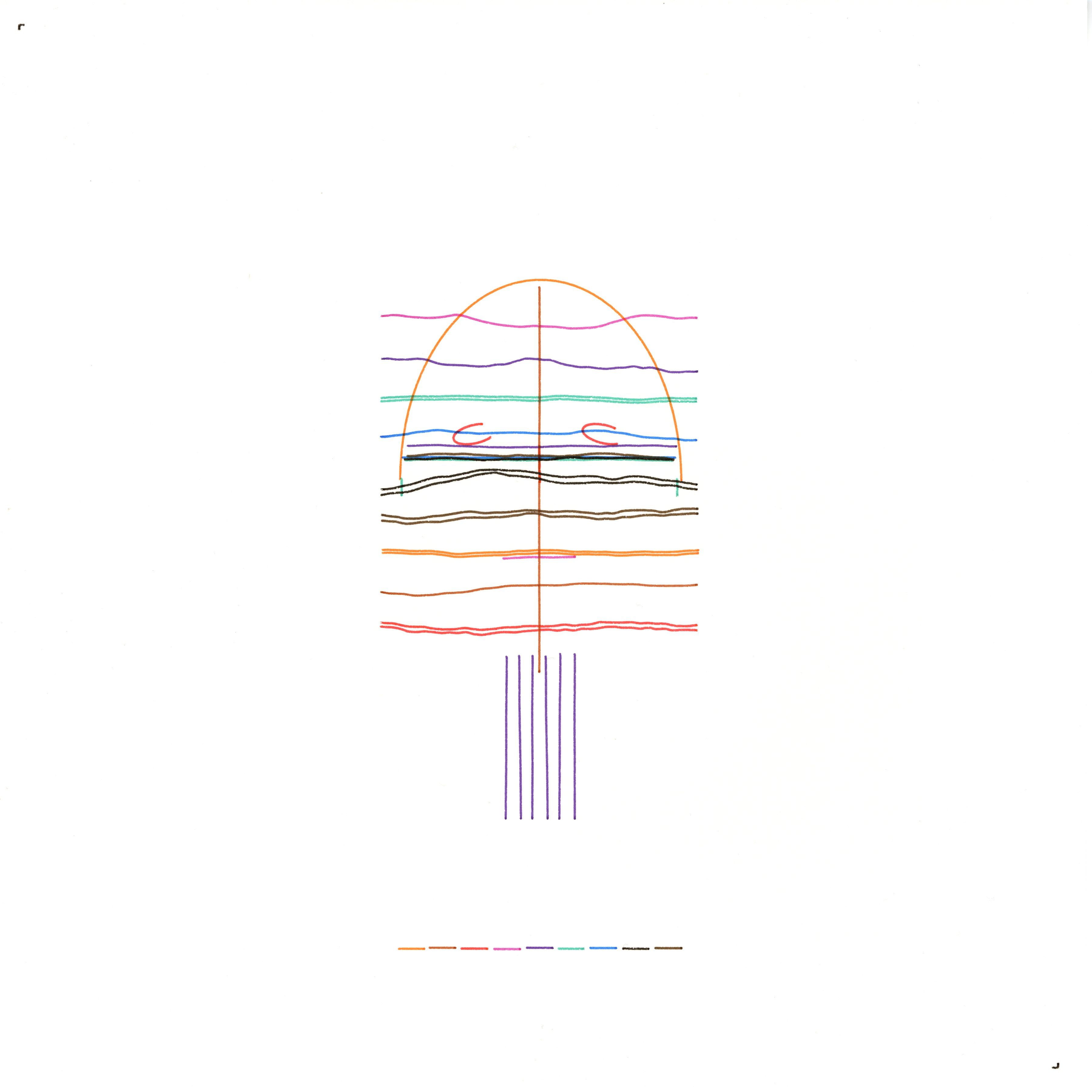 Today I am drawing myself as a head whose clearest channel is under pressure. I picture a calm, centred cranial dome, but the zone where perception and speech meet—the eyes down through the nose and mouth—is crossed by a set of narrow, insistent bands. These bands are not mistakes; they are everything I have to carry while I try to be legible. Even so, I plant the simplest portrait cues: orbital traces, a vertical stem, a mouth line, a throat, and two small pins at the cheeks to tether the dome. The drawing is a statement that the self can stay recognizable even when the middle of the face is crowded.